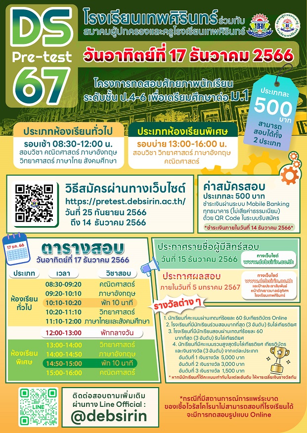 โครงการทดสอบศักยภาพเพื่อเตรียมศึกษาต่อ ม.1 โรงเรียนเทพศิรินทร์ DS Pre - test’67