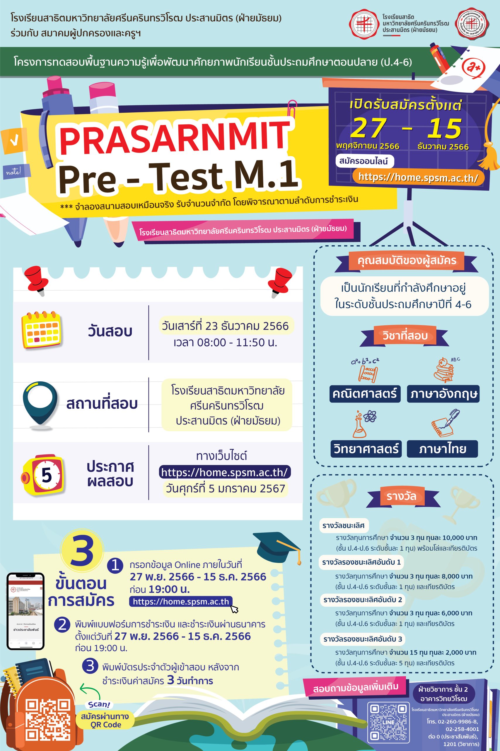 ดูรายละเอียดเพิ่มเติมได้ที่ >> โครงการทดสอบพื้นฐานความรู้เพื่อพัฒนาศักยภาพนักเรียนชั้นประถมศึกษาตอนปลาย (ป.4-6) – โรงเรียนสาธิต มศว ประสานมิตร (ฝ่ายมัธยม) (spsm.ac.th)