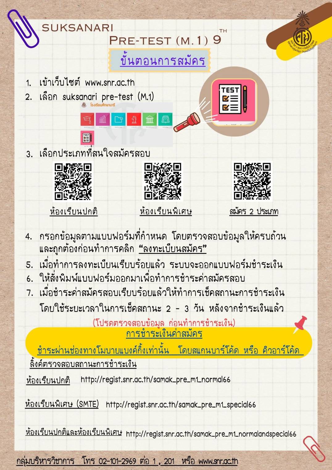 สมัคร โครงการ Pre-Test(M.1) ห้องเรียนปกติและห้องเรียนพิเศษ คลิก