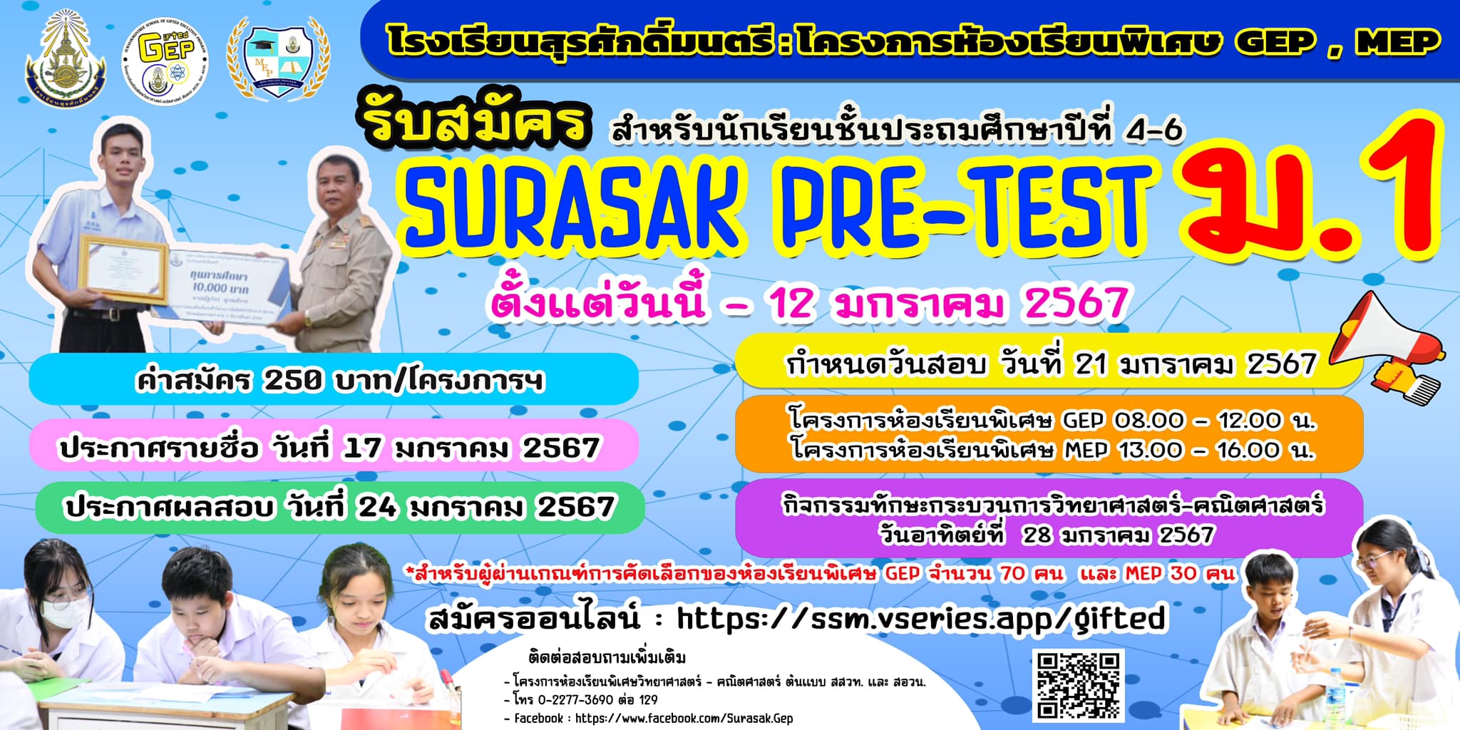 ระบบรับสมัคร >> https://ssm.vseries.app/gifted/main.php