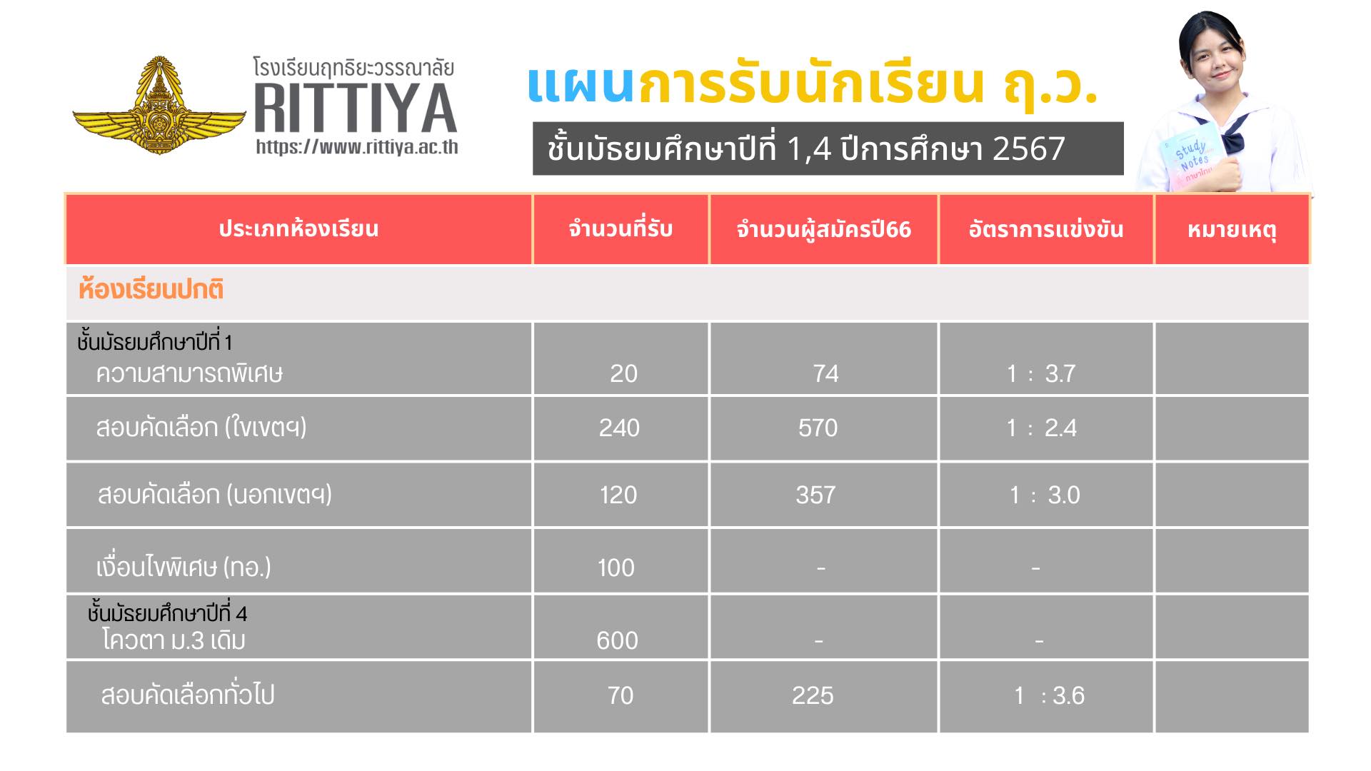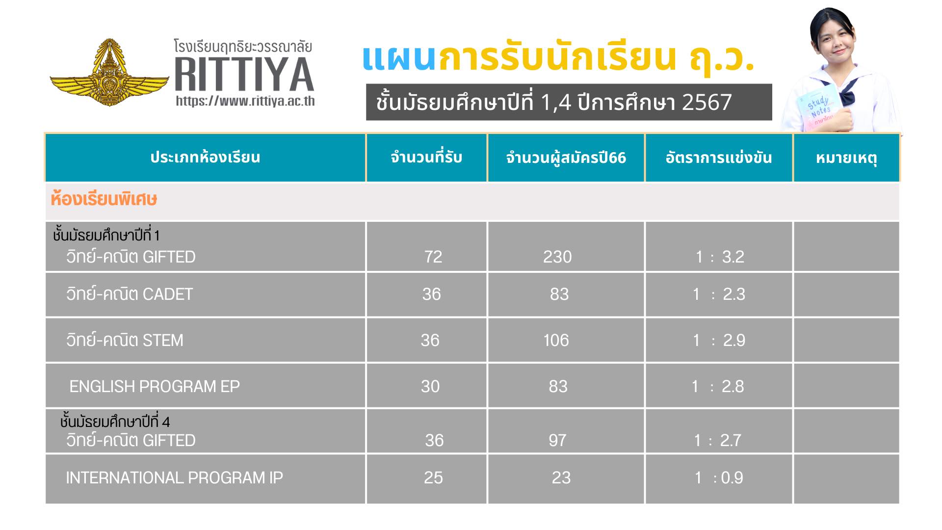 ดูรายละเอียดเพิ่มเติมได้ที่ >> รับสมัครนักเรียน ม.1,4 ปี 67 – โรงเรียนฤทธิยะวรรณาลัย || Rittiyawannalai School
