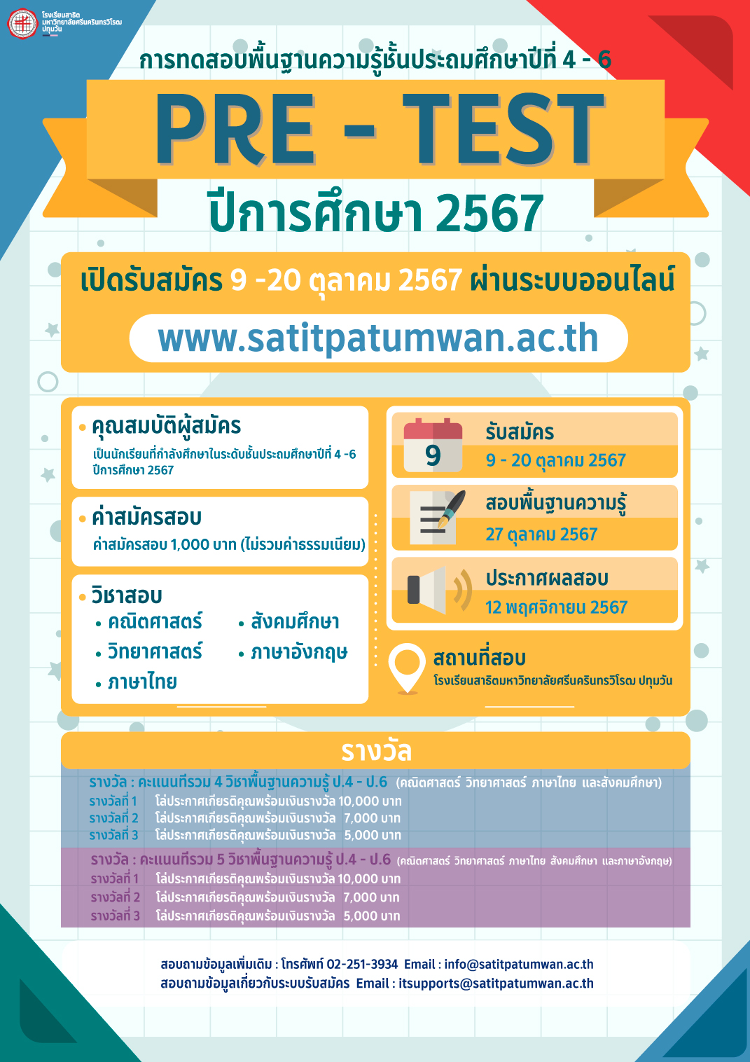 รวมข่าวสอบสอบพรีเทส เข้า ม.1 และ ม.4 ปี 2568
