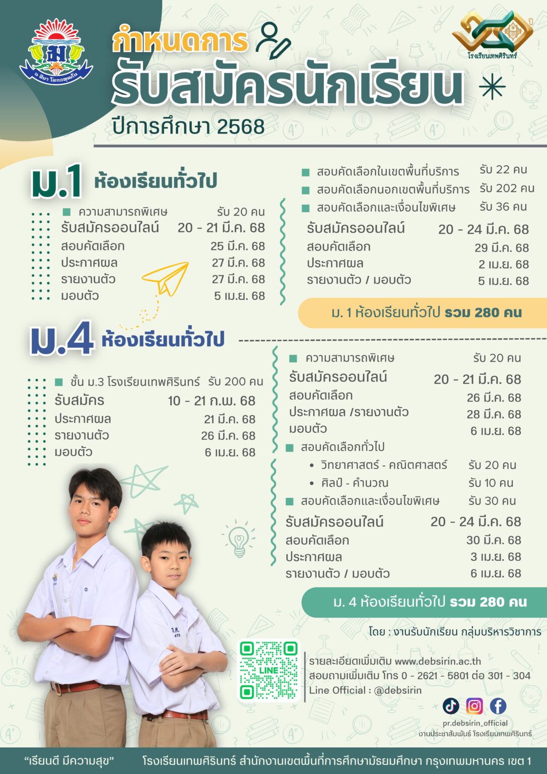 ดูรายละเอียดเพิ่มเติมได้ที่ >> ::โรงเรียนเทพศิรินทร์:: (debsirin.ac.th)