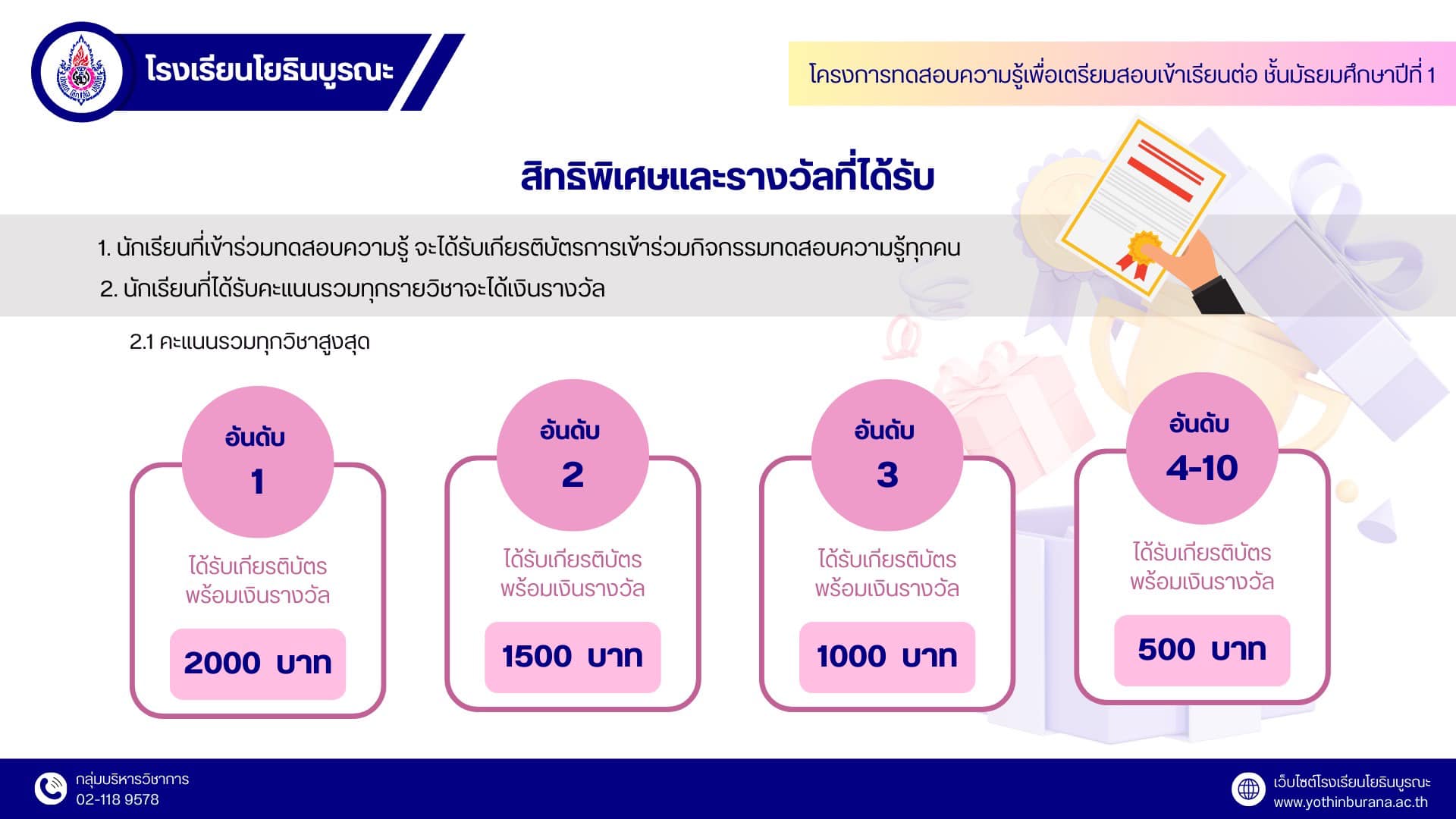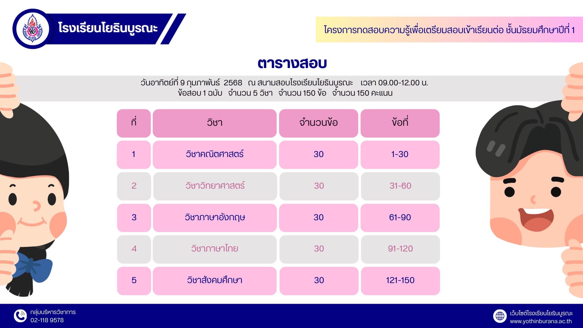 โครงการทดสอบความรู้เพื่อเตรียมสอบเข้าเรียนต่อ ม.1 YB-Pre-Test M.1 2025