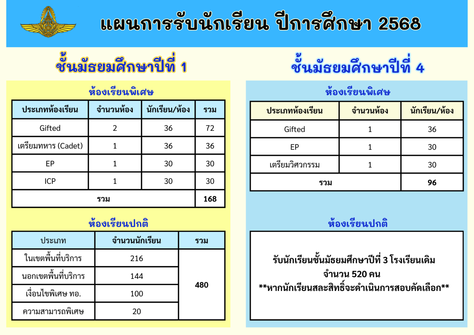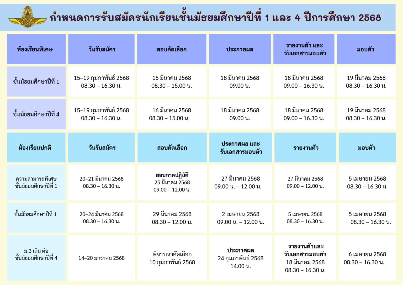 ปฏิทินรับสมัครนักเรียน ม.1 และ ม.4 ประจำปีการศึกษา 2568