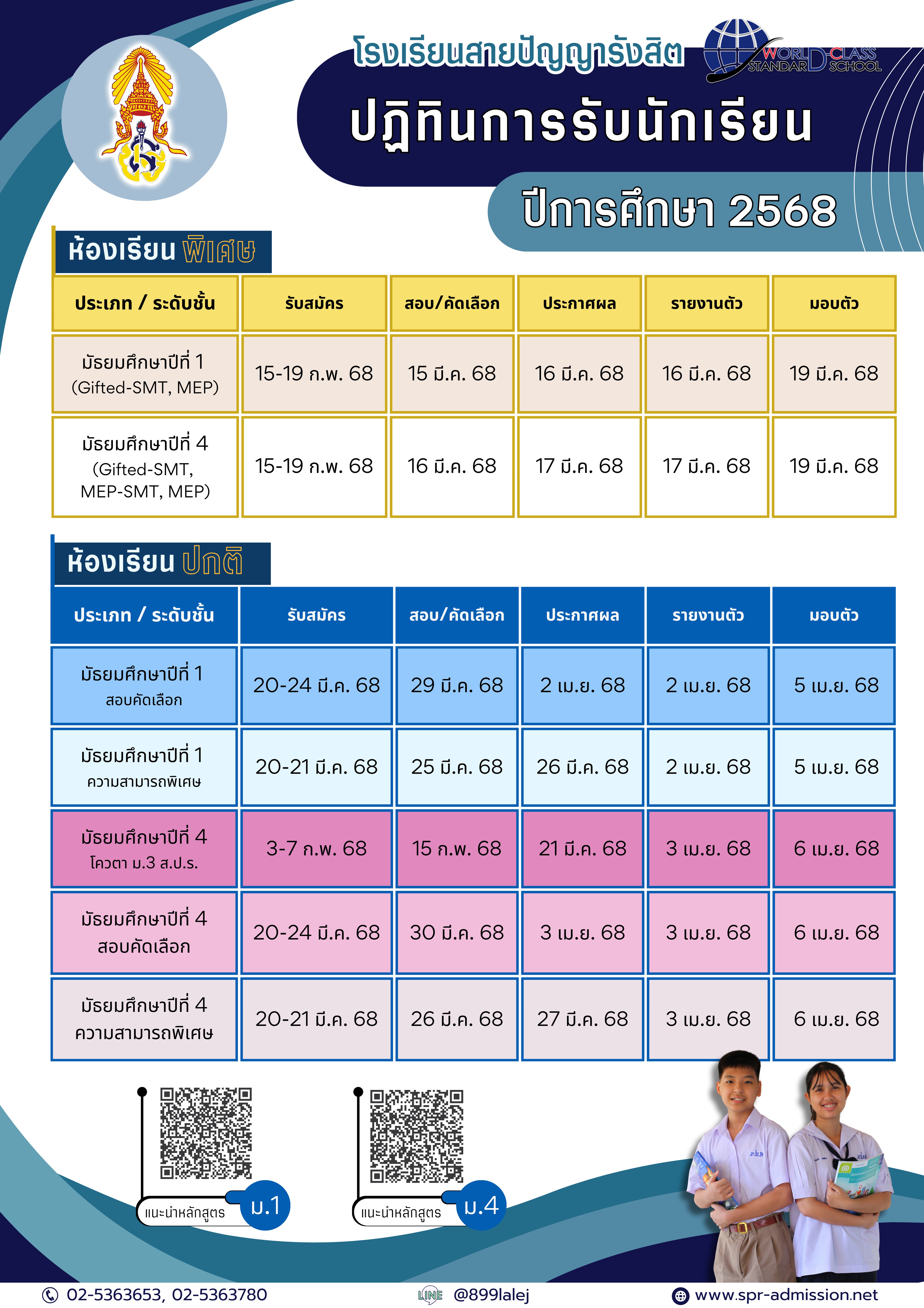 ปฏิทินรับสมัครนักเรียน ม.1 และ ม.4 ประจำปีการศึกษา 2568