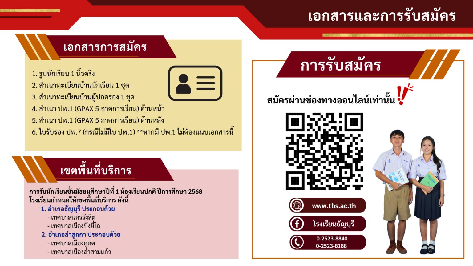 ระบบรับสมัครโรงเรียนธัญบุรี โครงการห้องเรียนพิเศษ ประจำปีการศึกษา 2568 : https://enroll.student.co.th/index.php/std_enroll/32048