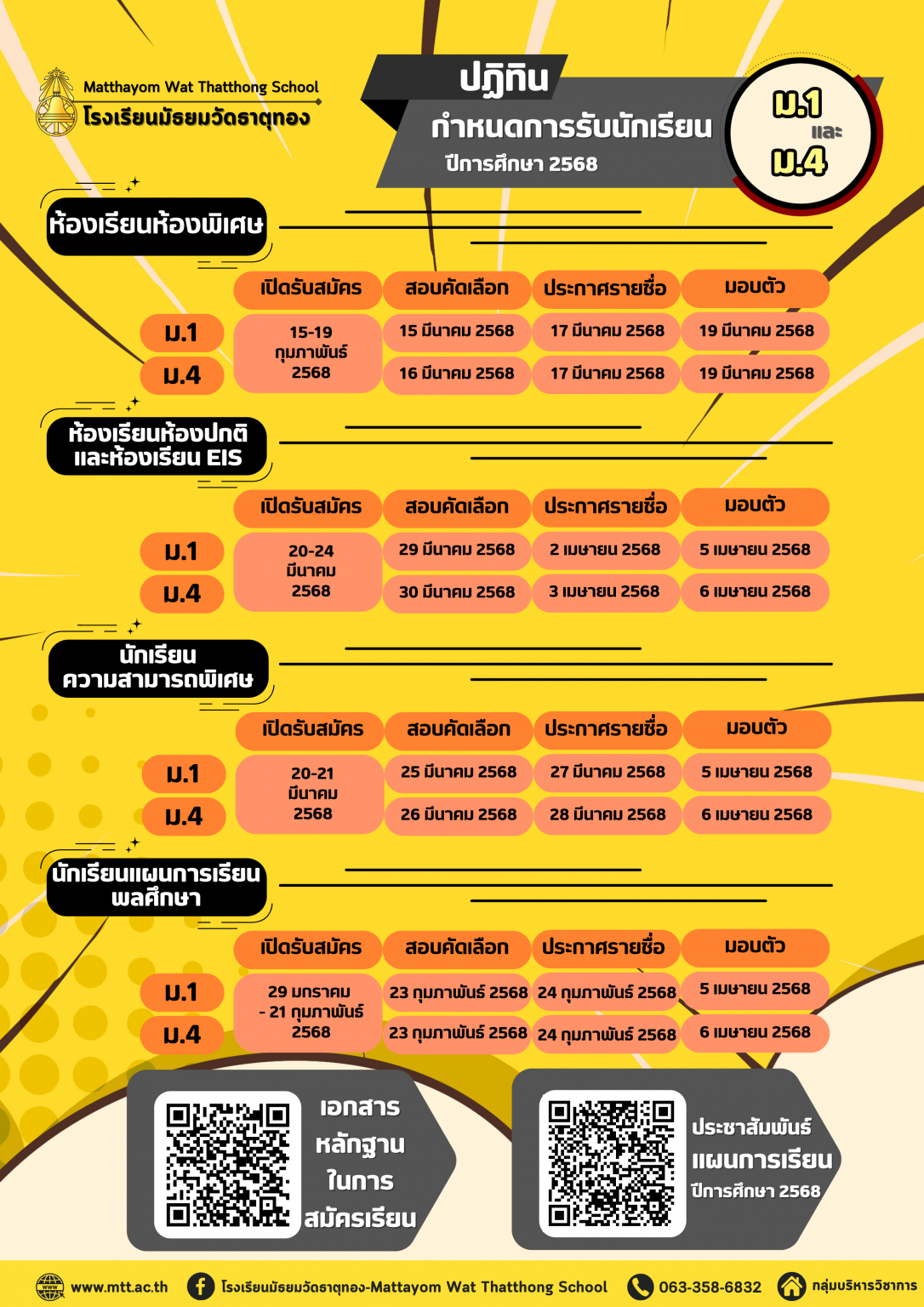 ปฏิทินรับสมัครนักเรียน ม.1 และ ม.4 ประจำปีการศึกษา 2568 New Update!