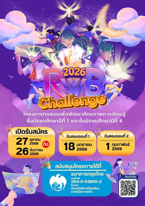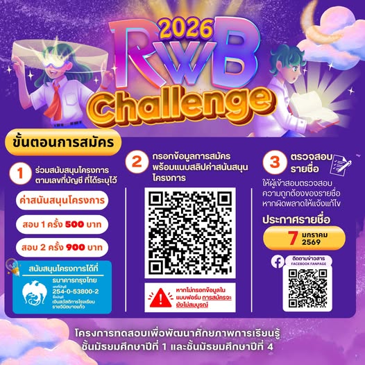 โครงการทดสอบเพื่อพัฒนาศักยภาพการเรียนรู้ชั้นมัธยมศึกษาปีที่ 1 และ 4 (RWB Challenge 2025) - โรงเรียนราชวินิตบางแก้ว