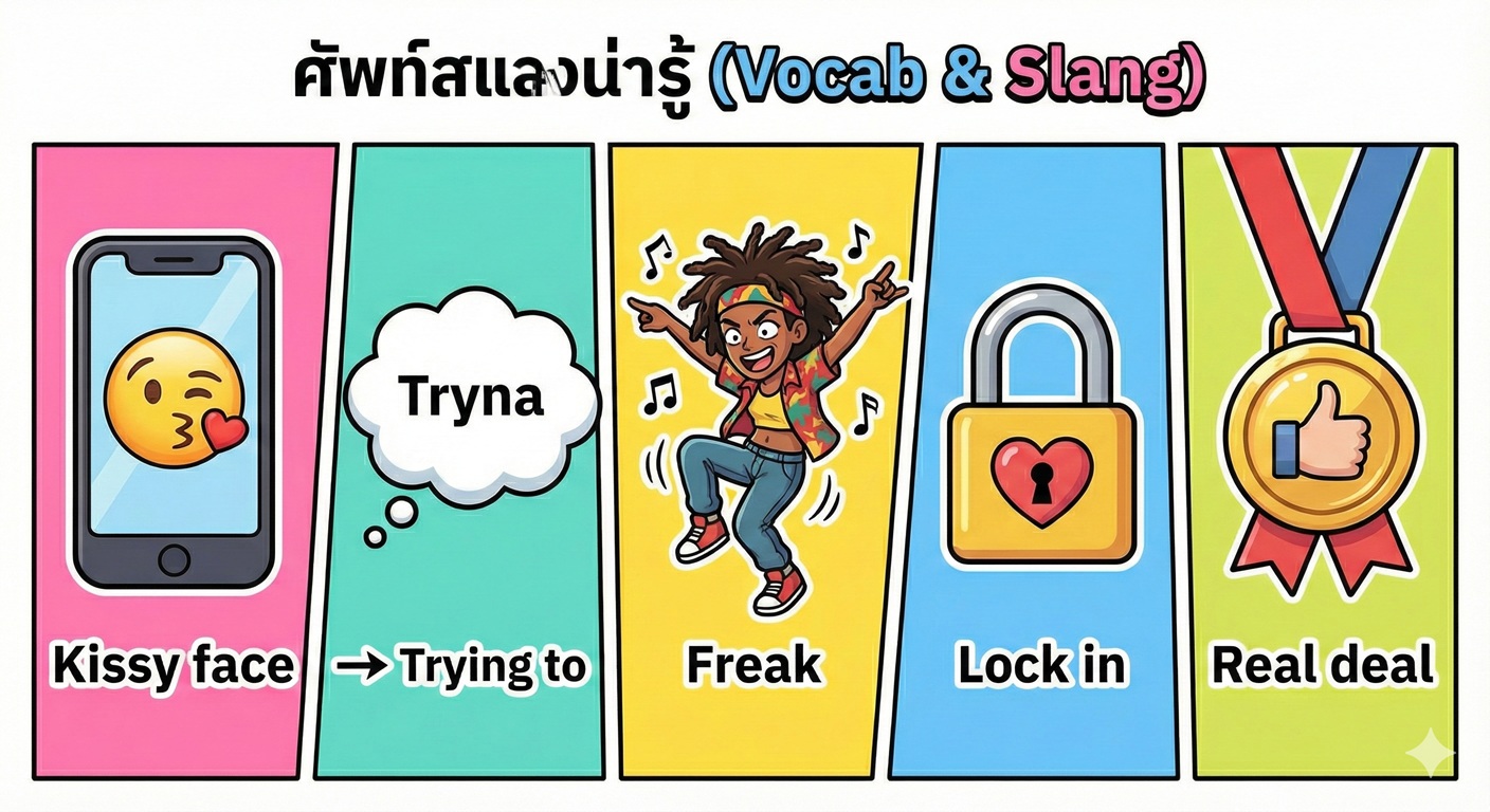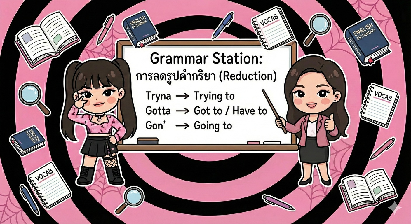 Alt Text: ไวยากรณ์ภาษาอังกฤษ Tryna และ Gotta