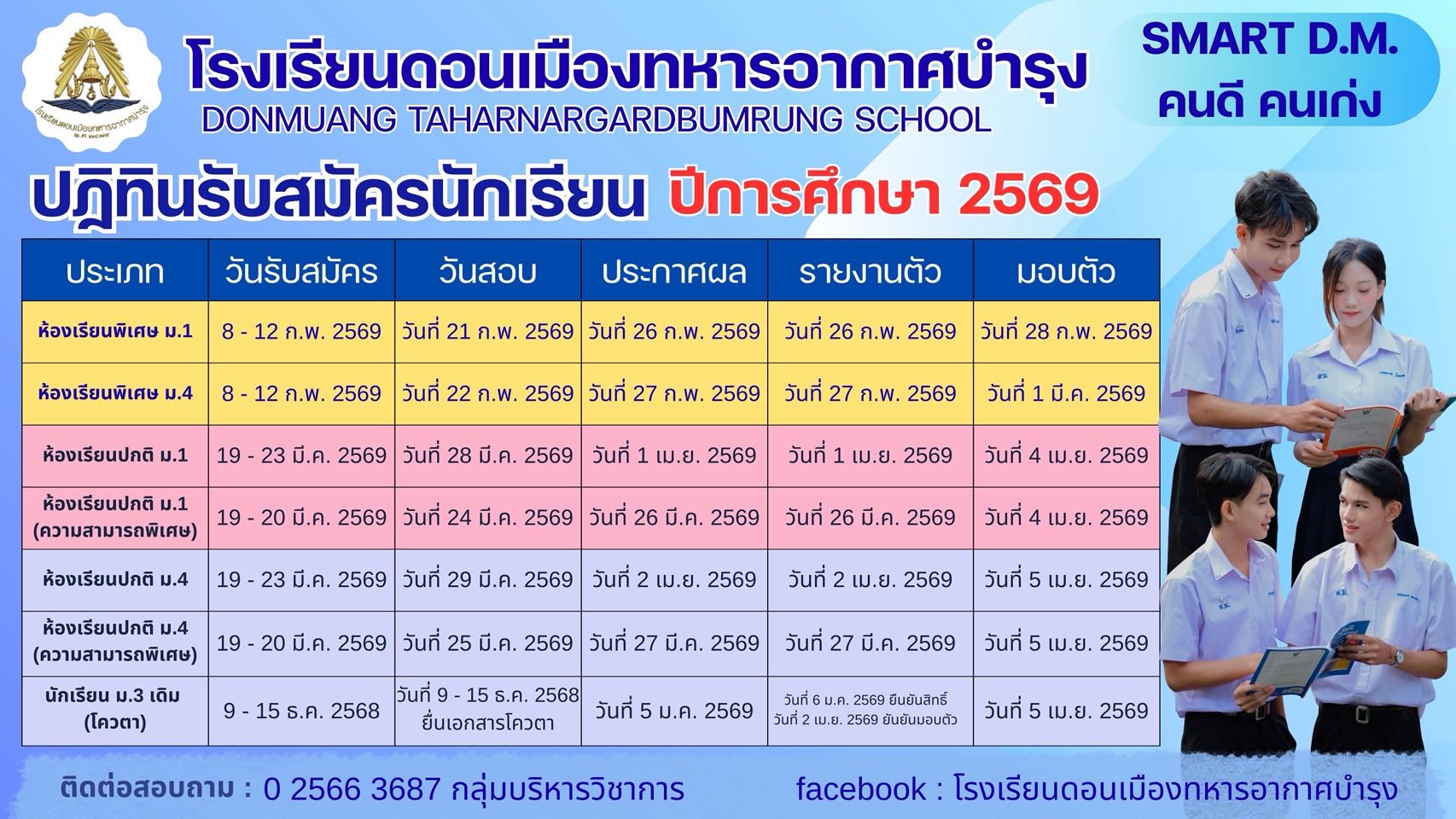 ดูรายละเอียดเพิ่มเติมได้ที่ >> เพจโรงเรียนดอนเมืองทหารอากาศบำรุง