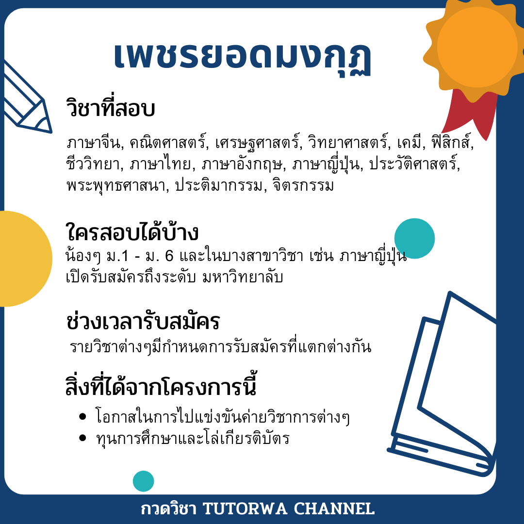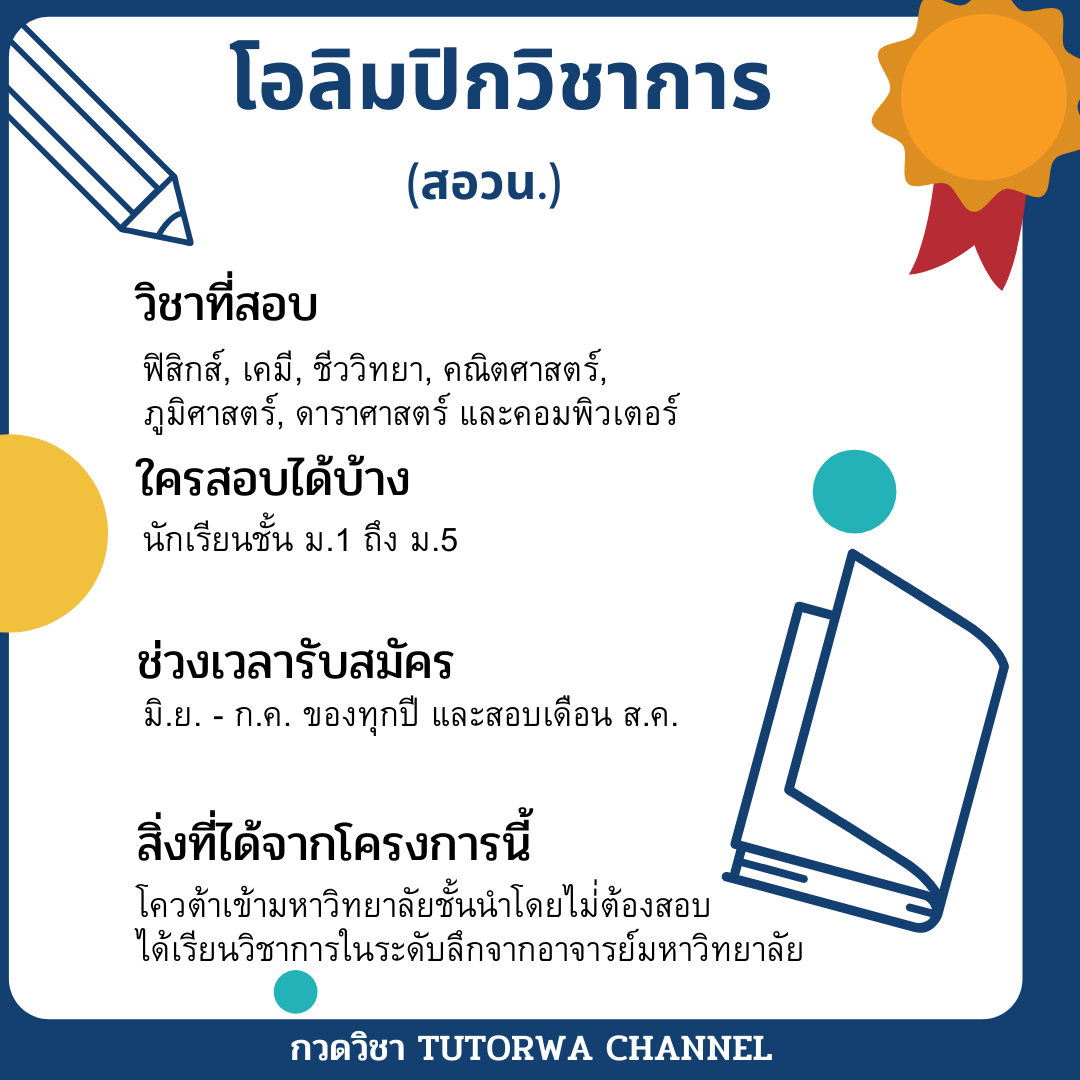 วันนี้พี่มีสรุปข้อมูลมาให้น้า มาดูกันเลยว่ามีการสอบเเข่งขันวิชาการอะไรบ้าง และการสอบเเข่งขันวิชาการเเบบไหนที่เหมาะกับเรากัน