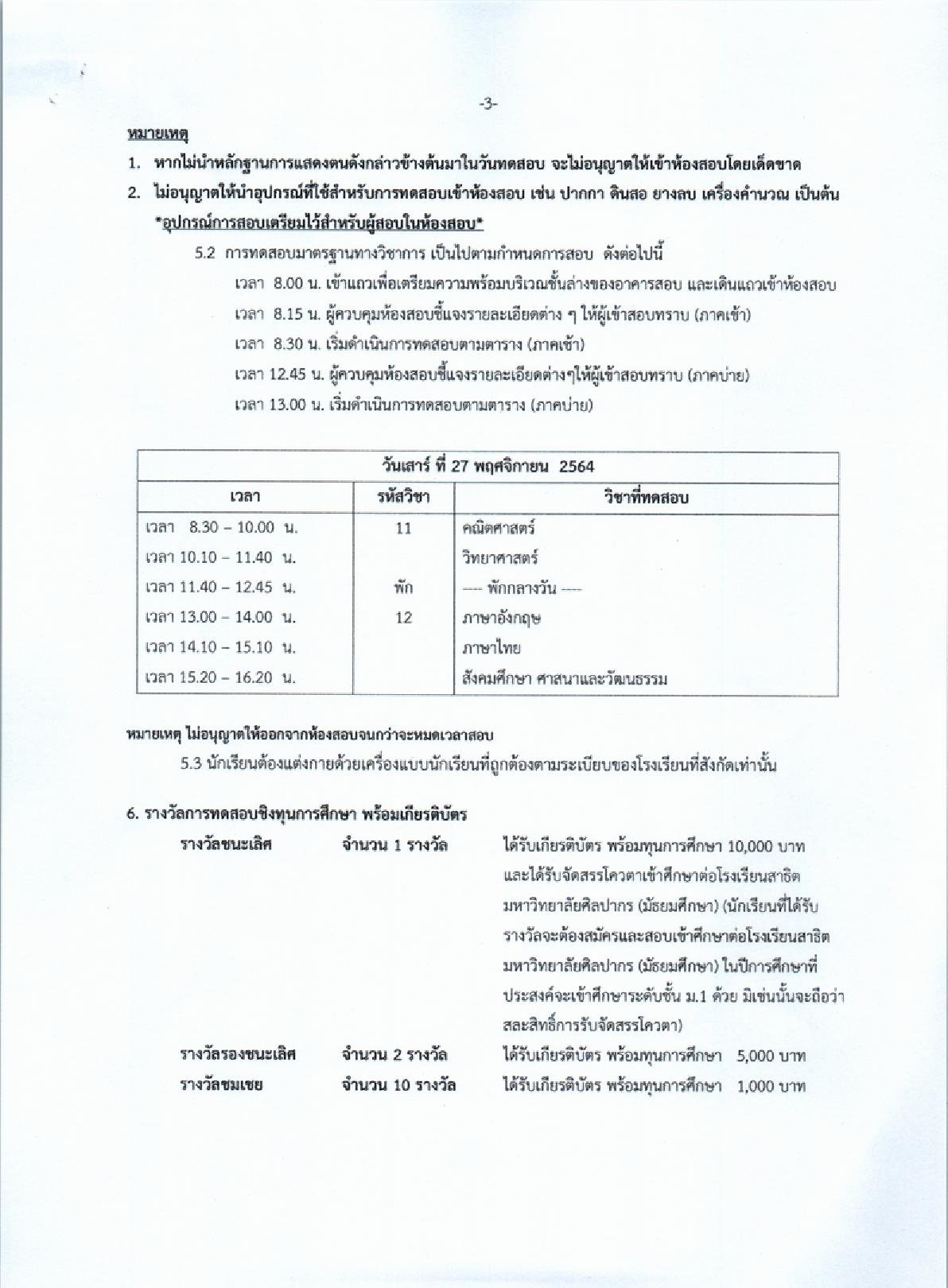 | วันเสาร์ ที่ 27 พฤศจิกายน 2564 | ทดสอบมาตรฐานทางวิชาการ |