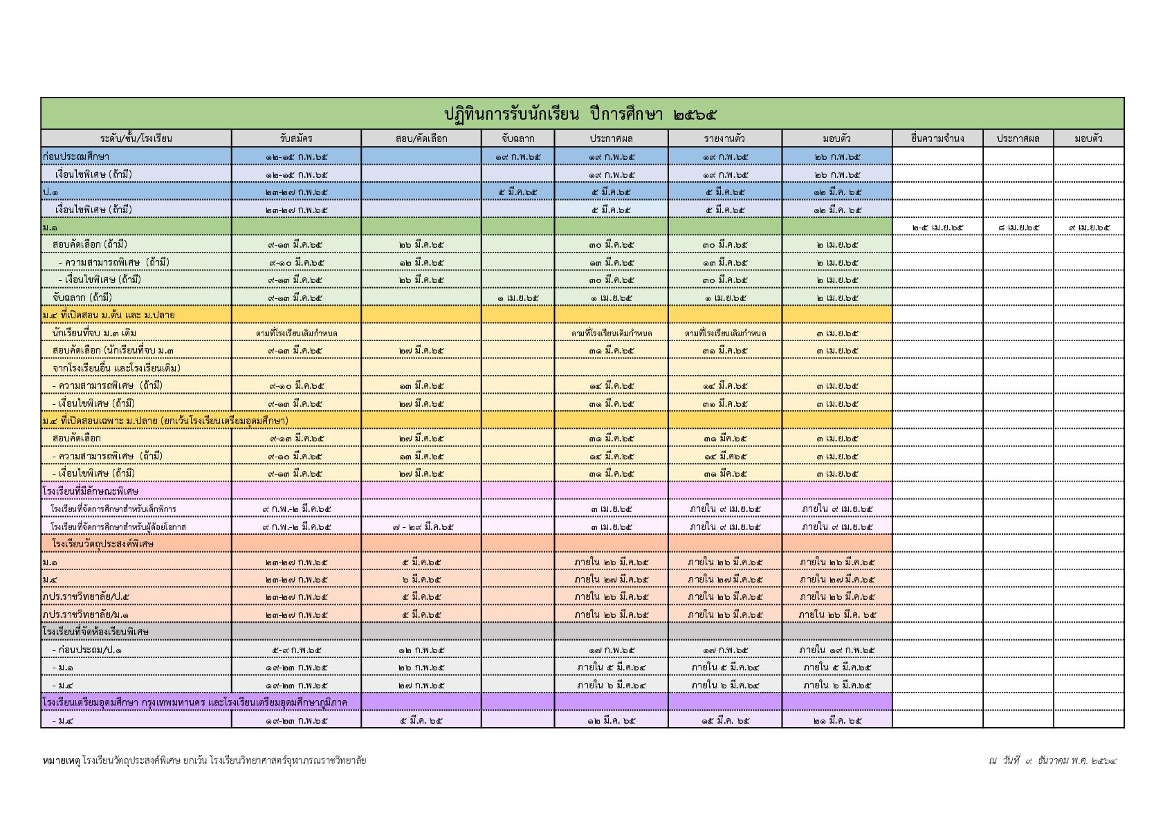 ปฏิทินการรับสมัครนักเรียน ม.1 และ ม.4 ปีการศึกษา2565