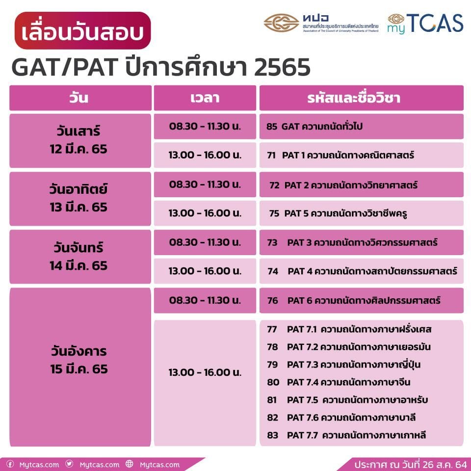ดูรายละเอียดเพิ่มเติมได้ที่ https://www.mytcas.com/news/update-gat-pat-2565