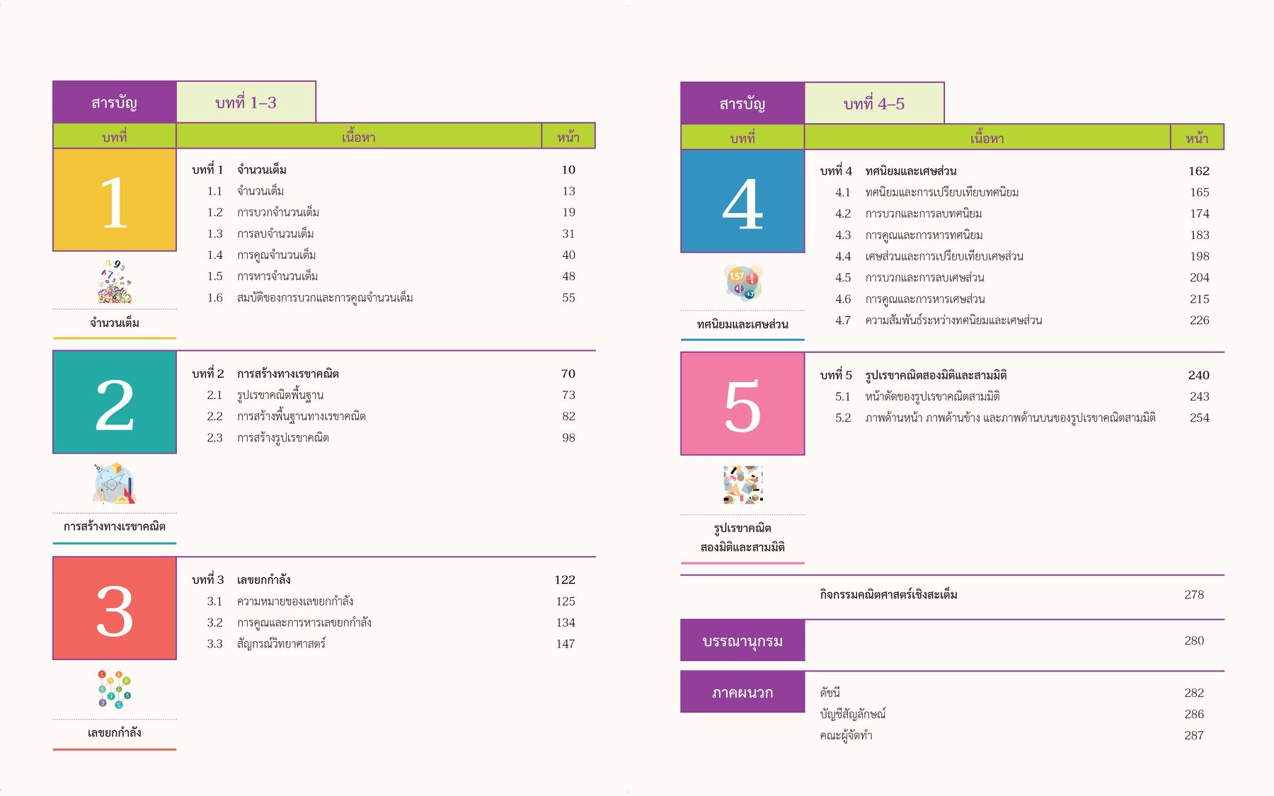 เนื้อหา คณิตศาสตร์ ม.1 หลักสูตรใหม่ของ สสวท. (ฉบับปรับปรุง ปี 2560) ซึ่งเป็นหลักสูตรที่ใช้มาจนถึงปีปัจจุบัน