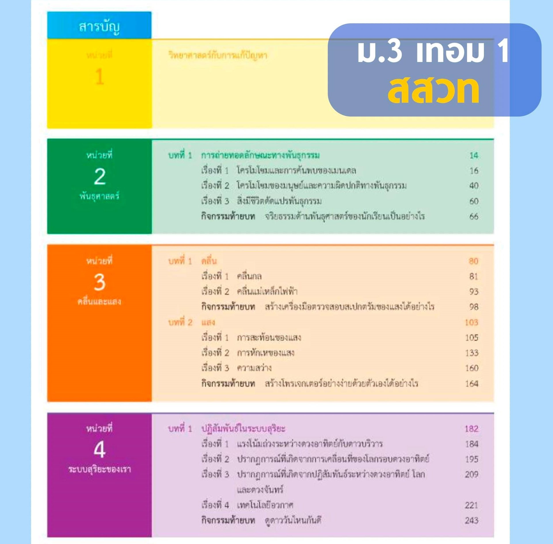 เนื้อหา วิทยาศาสตร์ ม.3 หลักสูตรใหม่ของ สสวท. (ฉบับปรับปรุง ปี 2560) ซึ่งเป็นหลักสูตรที่ใช้มาจนถึงปีปัจจุบัน