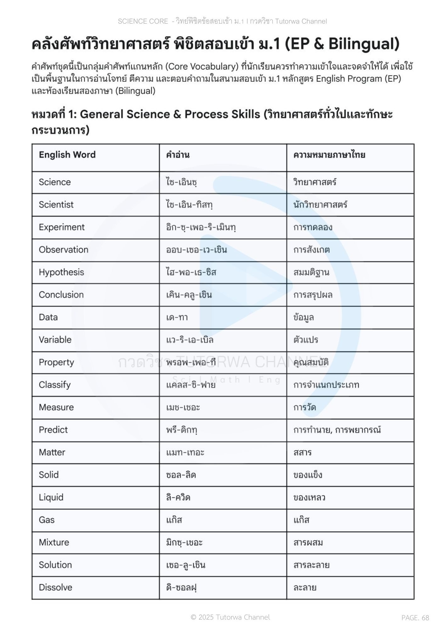 • แนวข้อสอบเข้า ม.1 วิชาวิทยาศาสตร์