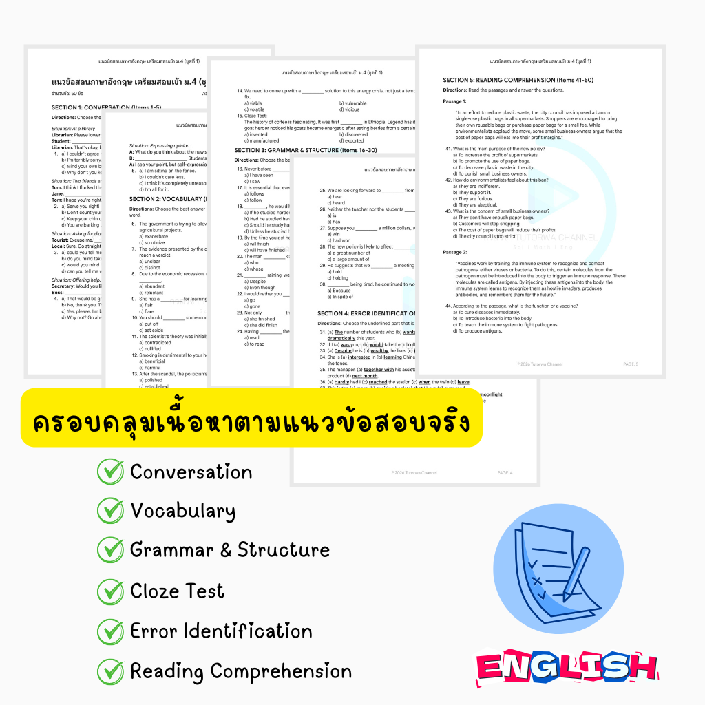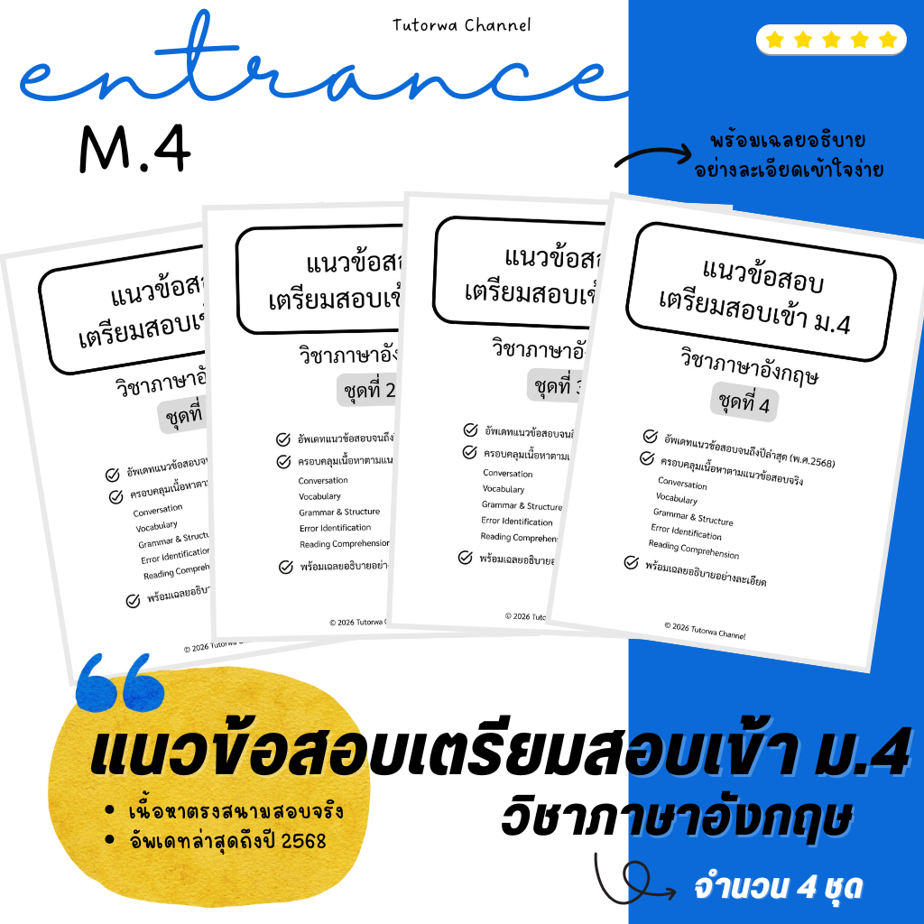 แนวข้อสอบ สอบเข้า ม.4 วิชาภาษาอังกฤษ พร้อมเฉลยอย่างละเอียด จำนวน 4 ชุด