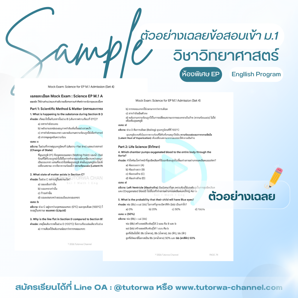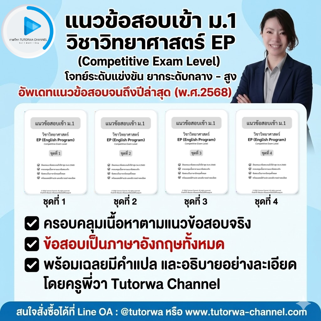 เนื้อหาหลัก: สำหรับน้องๆ ที่เตรียมสอบเข้า ห้องเรียน English Program (EP) หรือ MEP โดยเฉพาะ! ปัญหาใหญ่ไม่ใช่แค่ "ไม่รู้เนื้อหาวิทย์" แต่คือ "ไม่คุ้นคำศัพท์เฉพาะทาง" ไม่เคยฝึกกับข้อสอบจริง ทำให้ตีโจทย์ไม่แตก